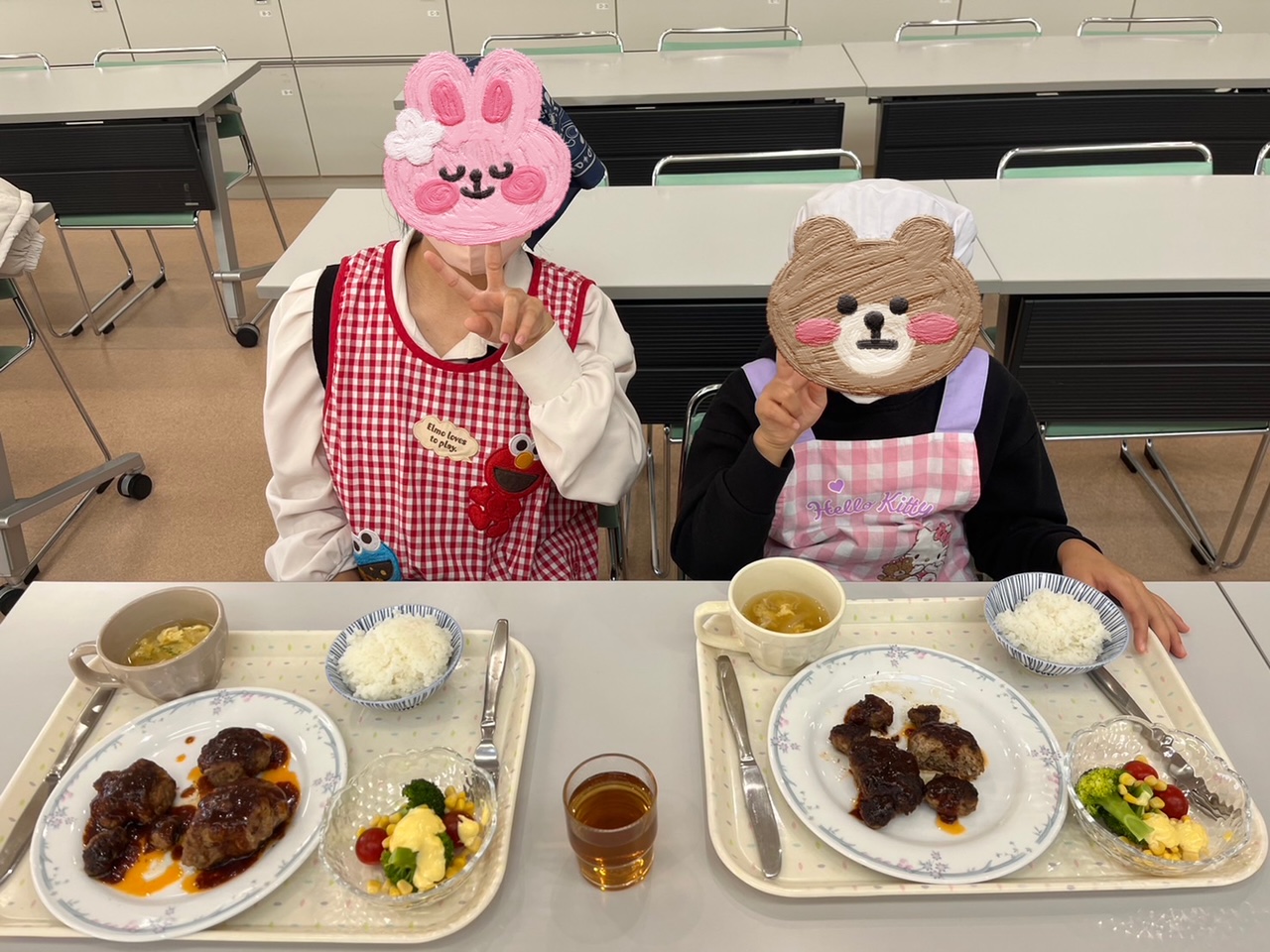 食事作りを楽しむことができることは、食育の第一歩ですよね!献立はハンバーグ、卵スープ、サラダ、チョコカップケーキです。