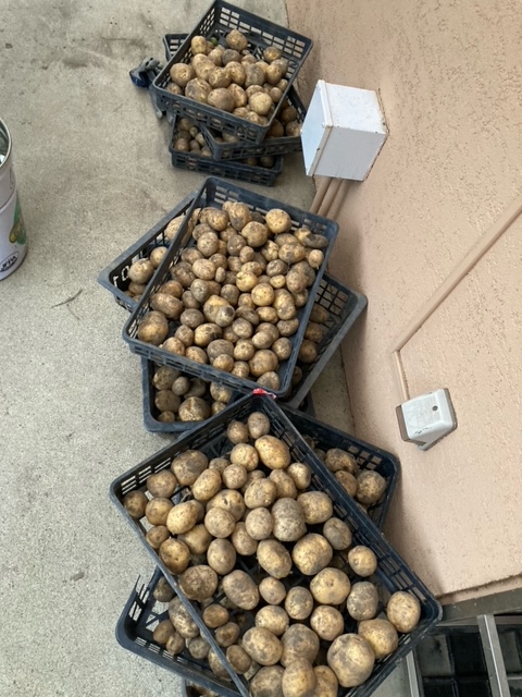 今年は発育がいつもよりも良くない感じでだったので、例年よりも小さめのじゃがいもが多かったですが、土の中からじゃがいもが顔
