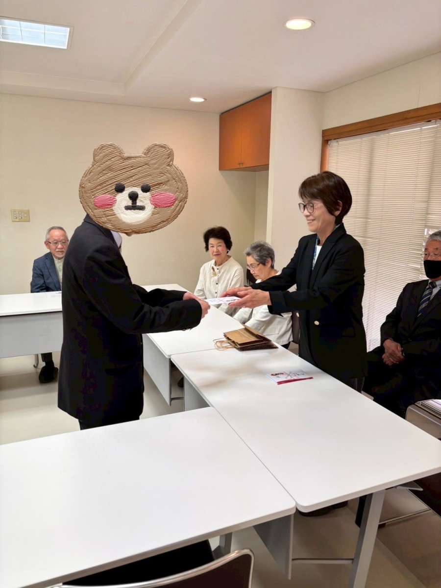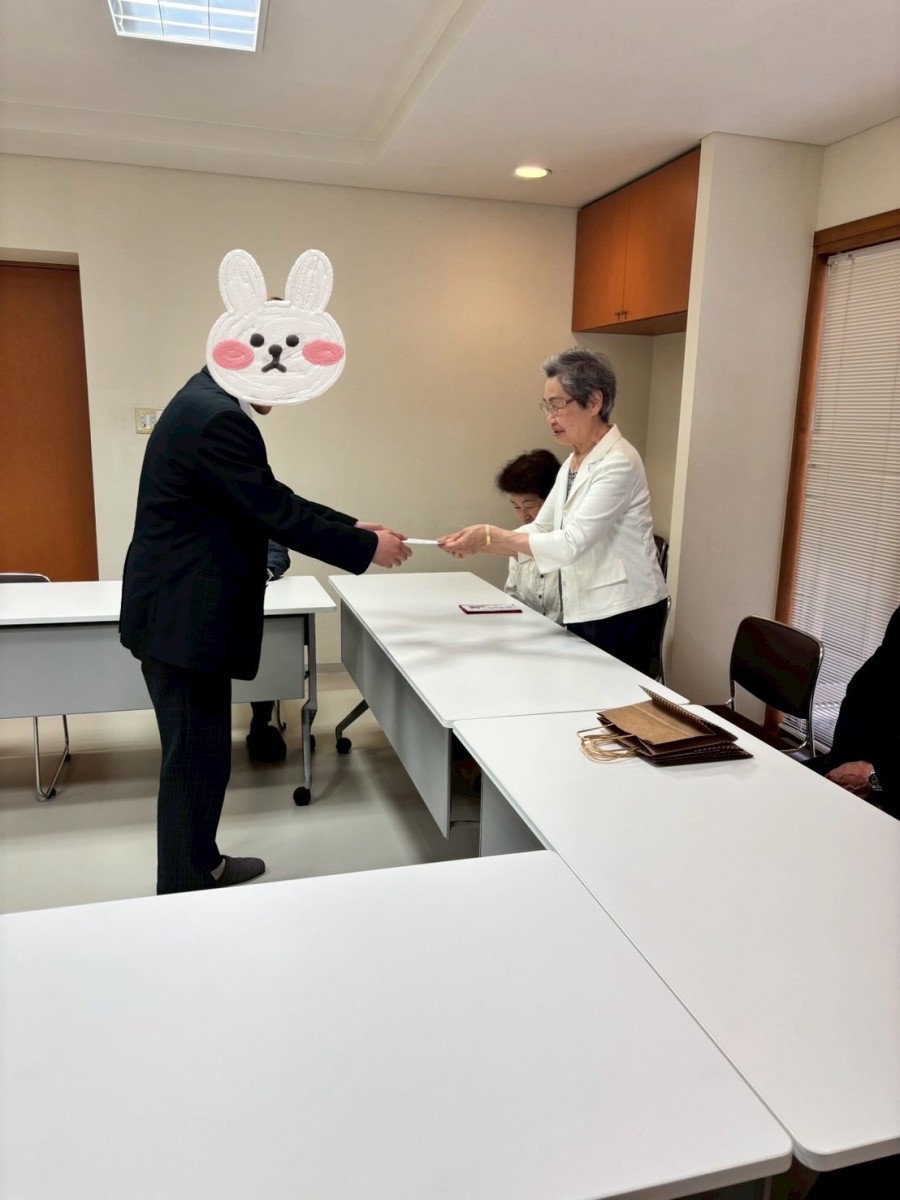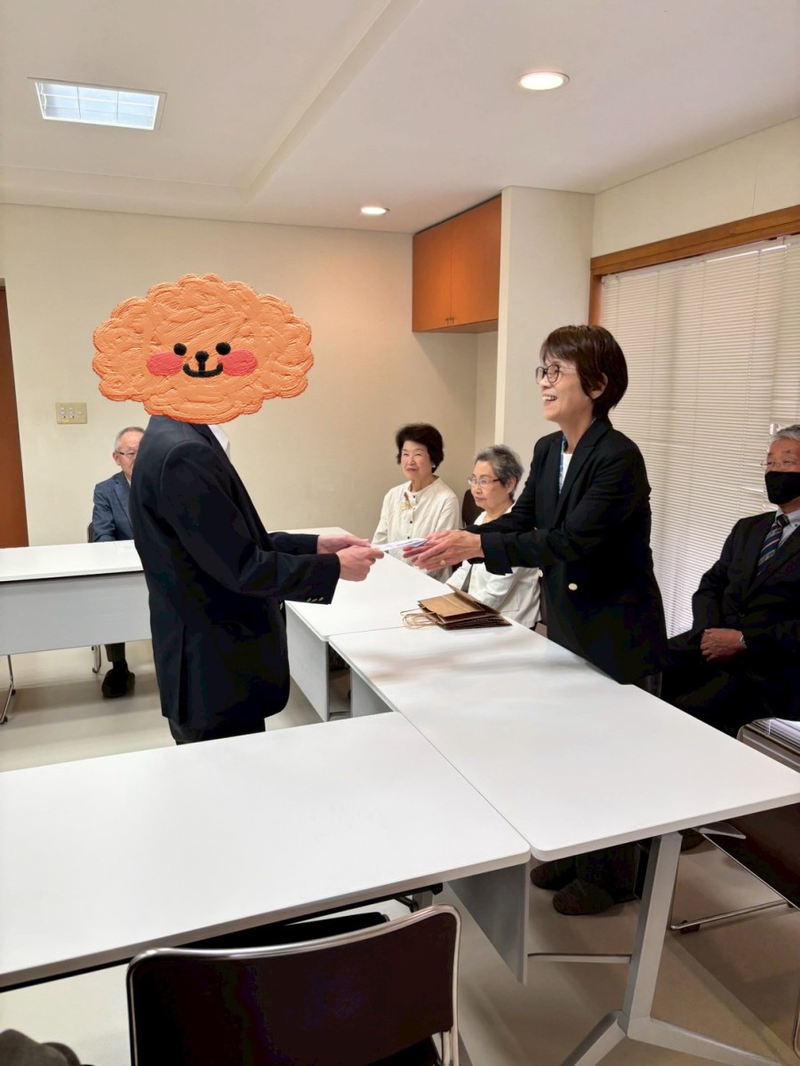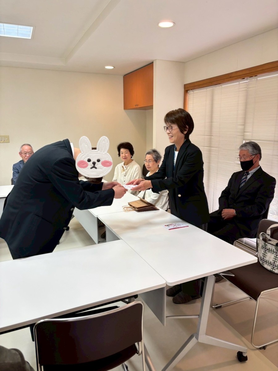橋本様よりお祝いの贈呈をしていただき、会長の奈良様からは貴重なお話と、素敵な絵手紙をプレゼントしていただきました。