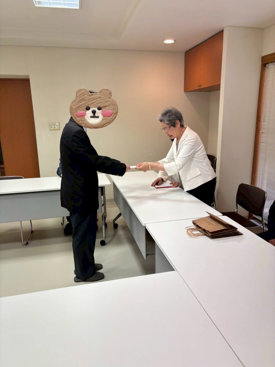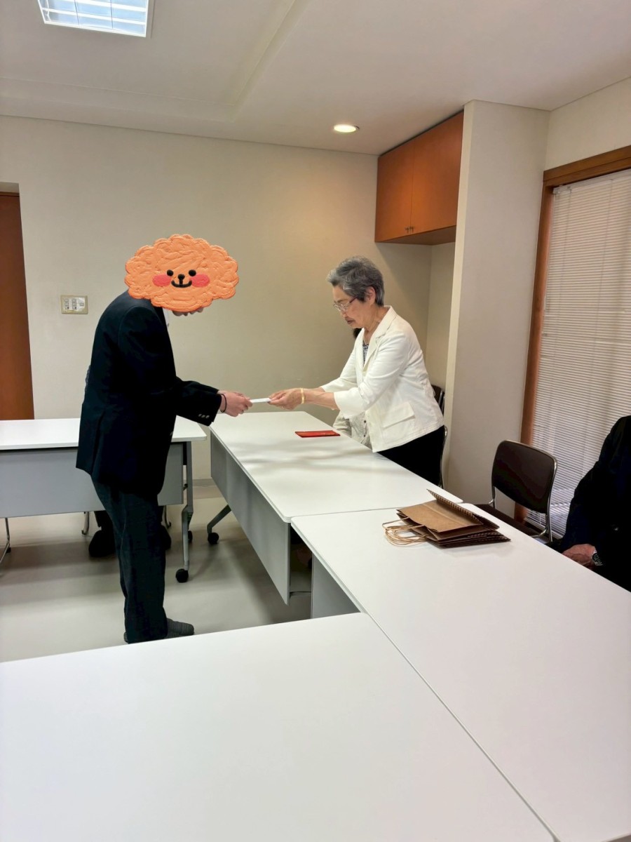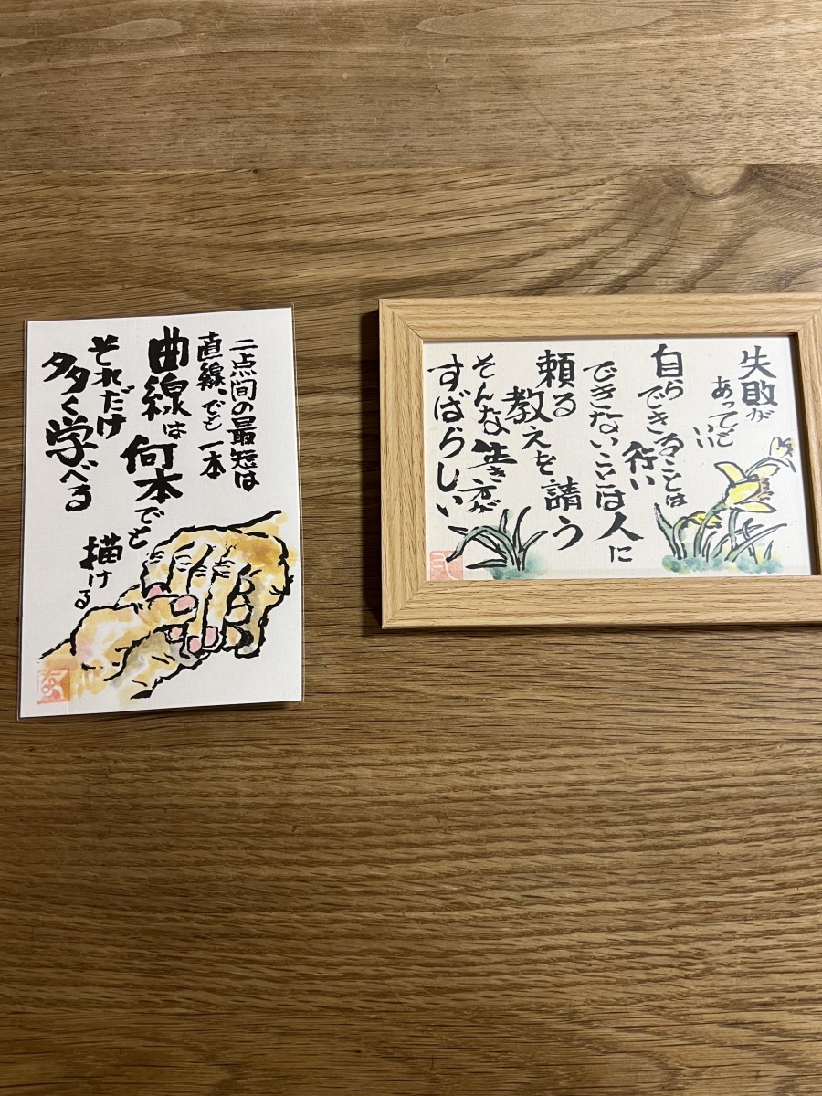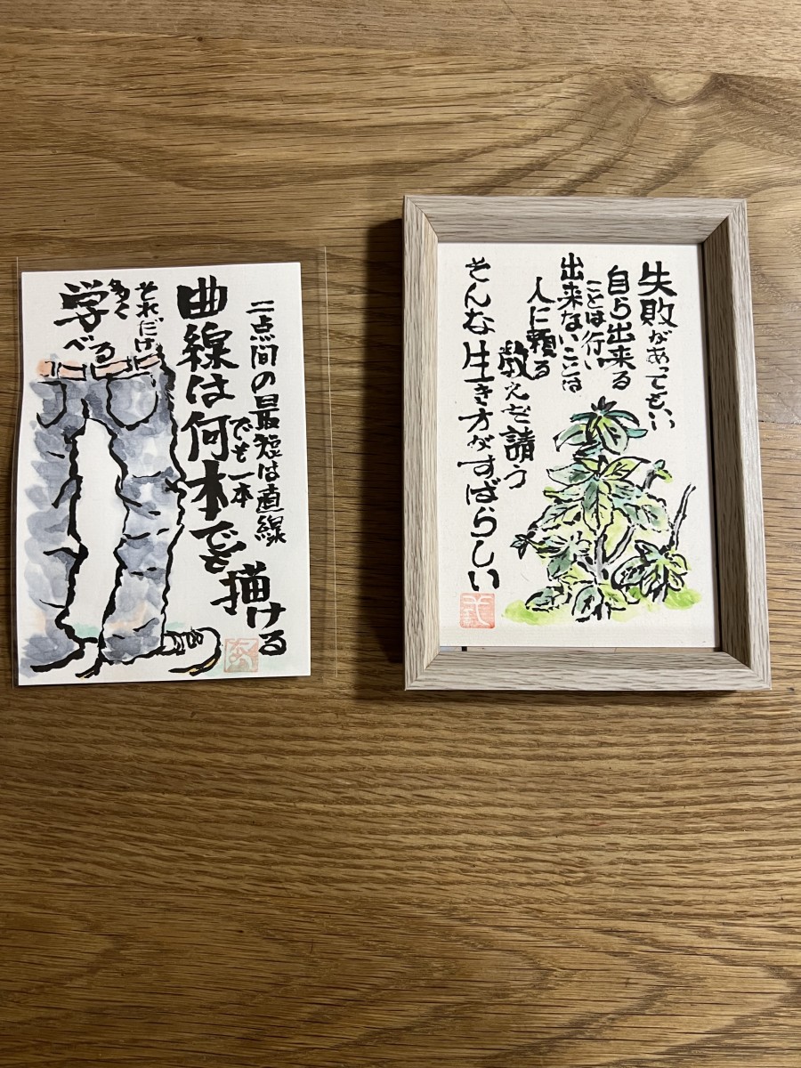 橋本様よりお祝いの贈呈をしていただき、会長の奈良様からは貴重なお話と、素敵な絵手紙をプレゼントしていただきました。