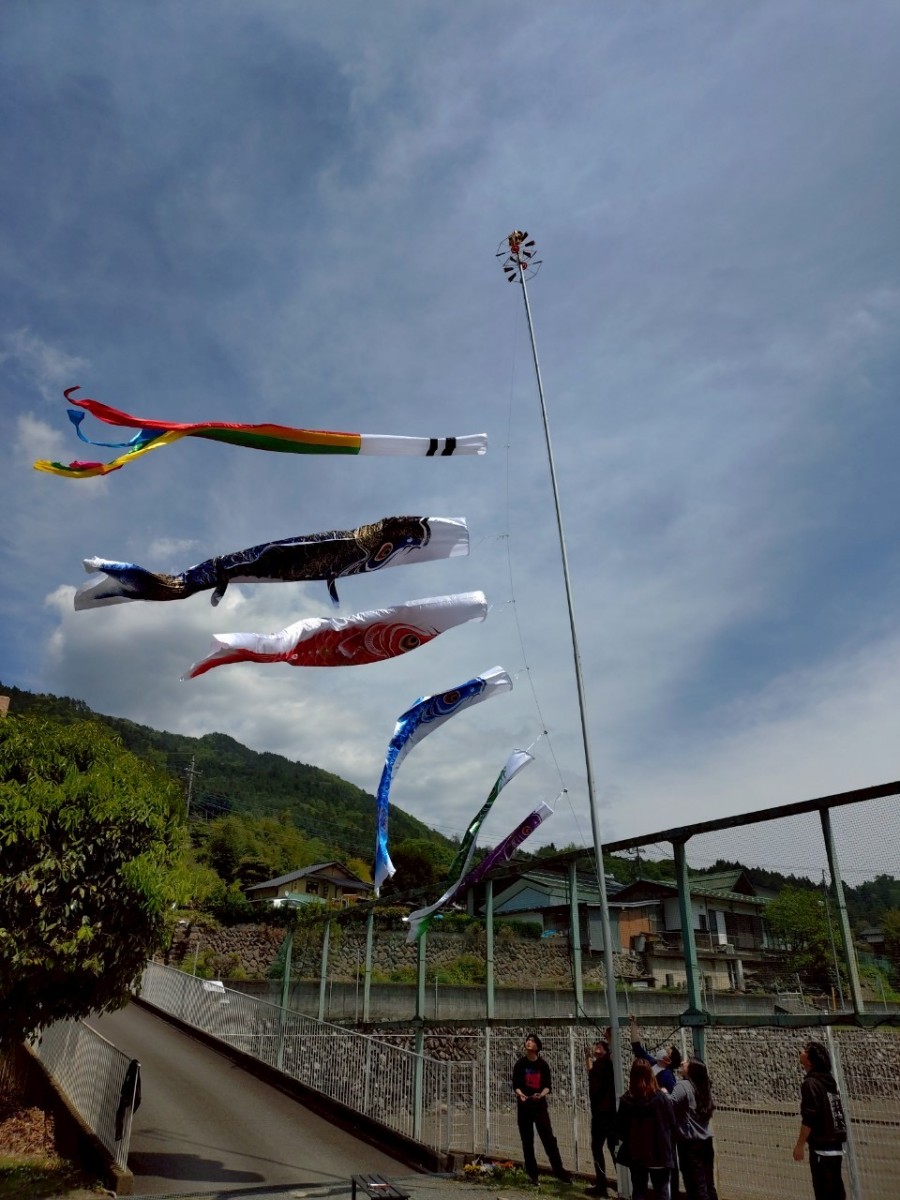 子どもの日が近づく中、今日は職員がこいのぼりを掲揚してくれました。