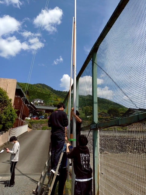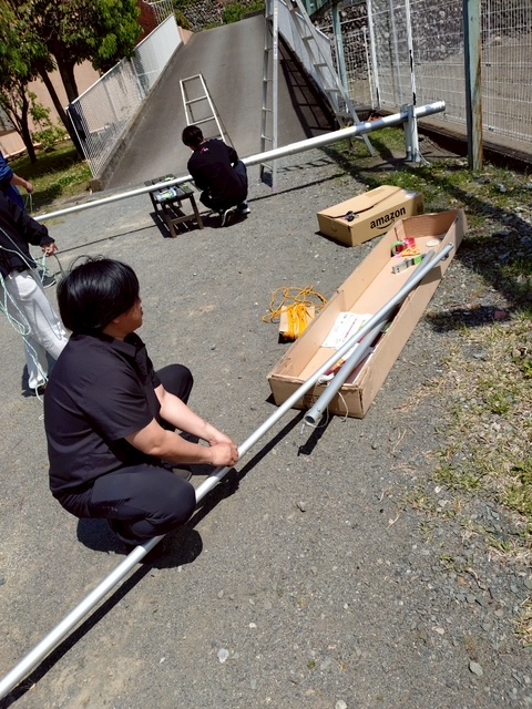 毎年の事ながら、高さのあるポールを立てるのは大変な作業です。組み立ても1年に1回の事なので、「あれ?どうだっけ?」と、