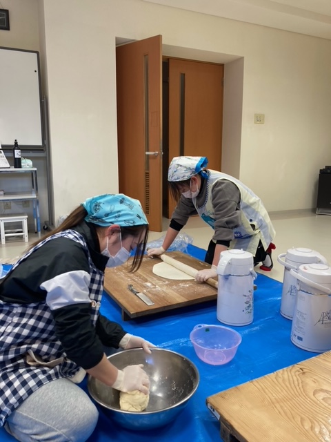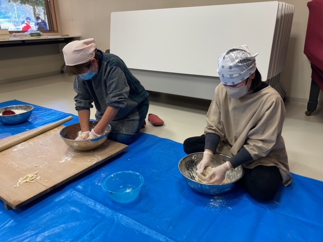毎年おこなっていた「手打ちうどんともちつきの集い」は、コロナ禍により実施が出来ませんでしたが、職員と子ども達だけで、もちつきと手作りうどんを味わいました。イベントとしての経験値のない職員も多くいましたが、経験のある職員に教わりながら、美味しいうどんとお餅を提供することができました。子ども達も貴重な体験が出来たのではないかと思います。会の最後はビンゴ大会で盛り上がりました。
