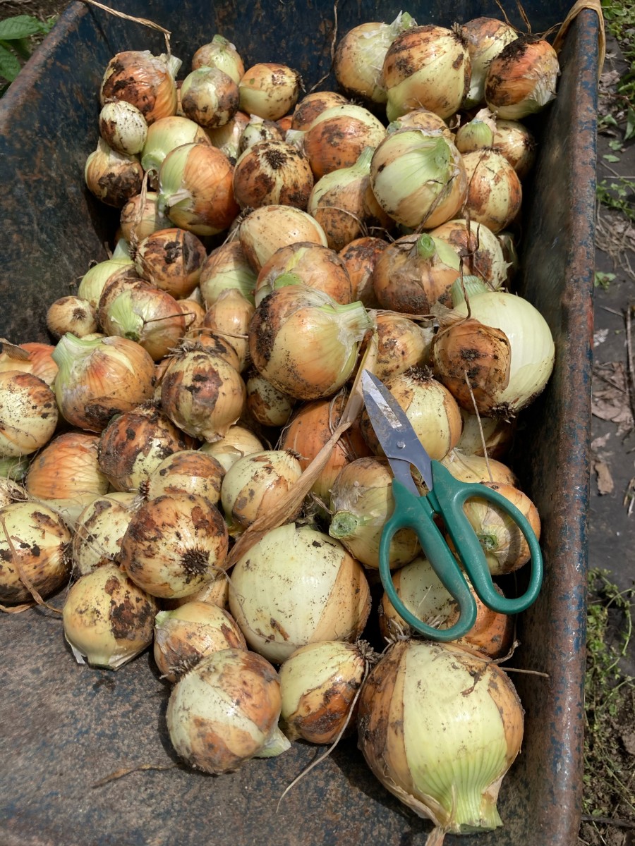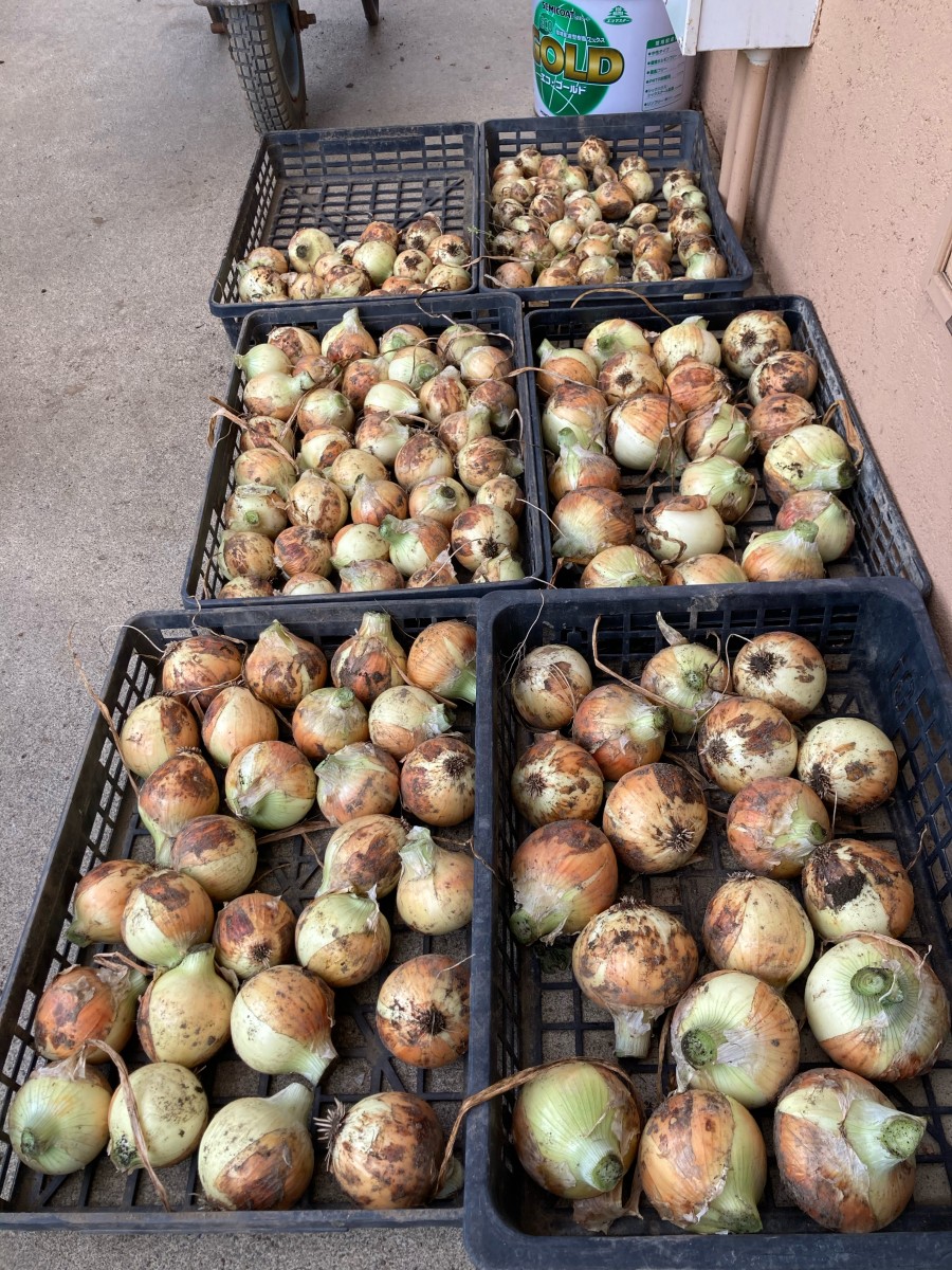 タマネギの収穫! 2024/05/29 ー令和6年5月29日ー 今日は畑のタマネギを収穫しました。 昨年に比べれば大きなタマネギがたくさん獲れました。 同じ苗を同じ時期に植えて、同じように愛情をもって育てたのに、これだけ形が違うなんて・・ 個性なのか、多様性の時代ですかねぇ・・ あとは子ども達が美味しく食べてくれれば最高ですね! たくさんとれました!