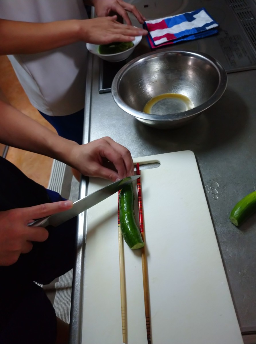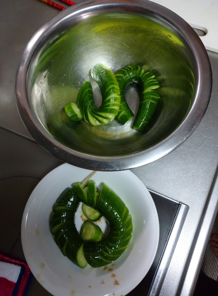 トルネードきゅうり! 2023/08/11 トルネード! 電気の点検に来た日本テクノの方から、たくさんのお野菜をいただきました! さっそく、子ども達がネットで調べて、"トルネードきゅうり"を作りました! みんなで美味しくいただきました。ありがとうございました!