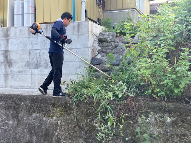 草刈り機を初めて使う職員もいましたが、出来る事を精一杯頑張りました!