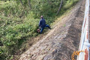 今回は6名の職員で草刈り作業をしましたが、今までで1番、長い区間を清掃することができました。