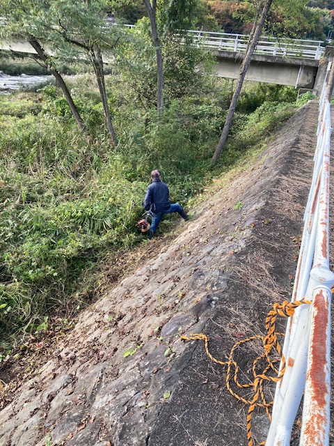 あっという間に草が伸び放題。草のツルが川辺から歩道にまで届きそうな状態でした。