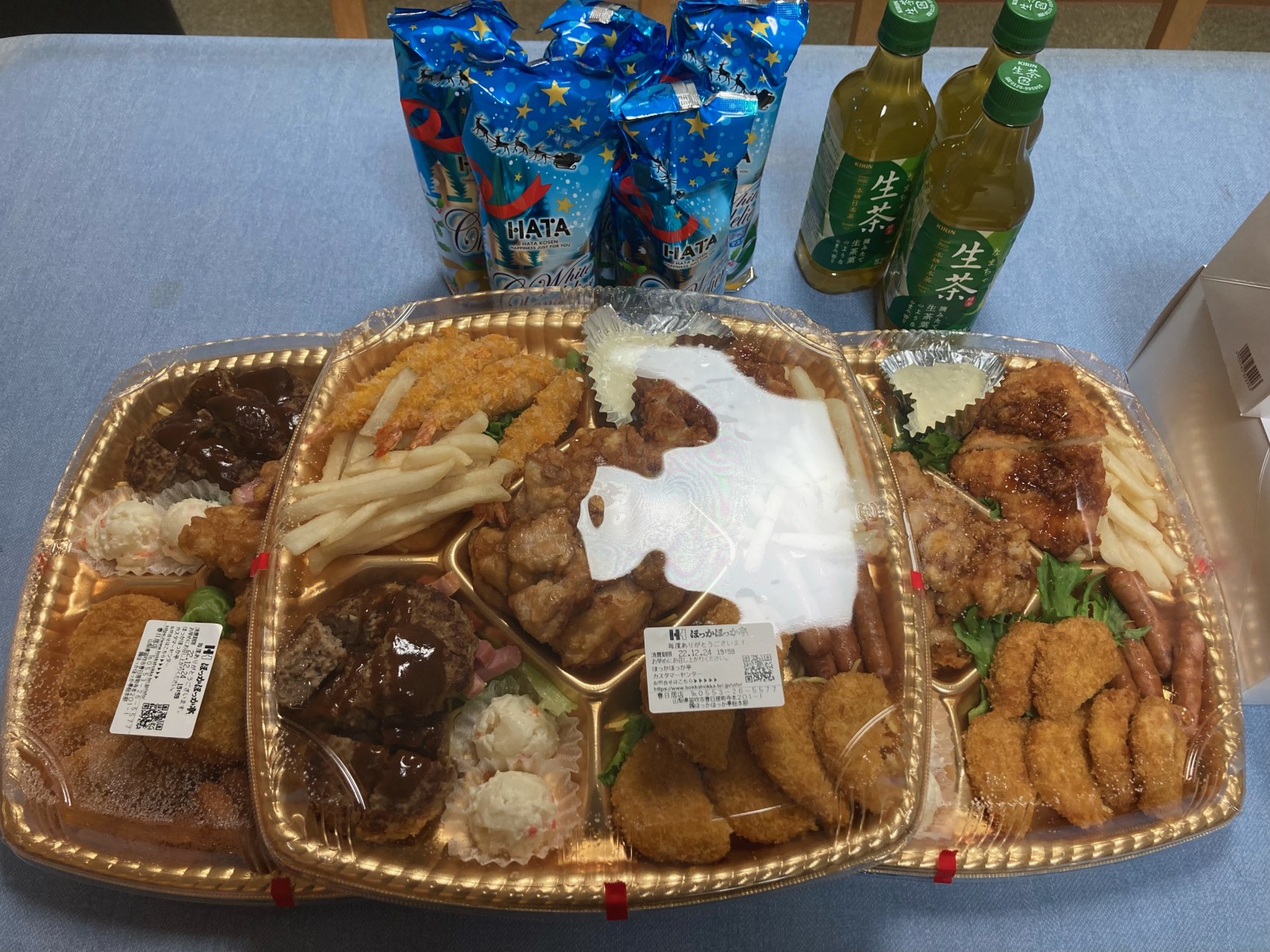 佐野創建、佐野修也様よりクリスマスに贈り物をいただきました 2022/12/24 美味しそう! ー令和4年12月24日ー 佐野創建、代表の佐野修也様より、クリスマス会にあわせてオードブル、クリスマスケーキ、シャンメリーをいただきました。職員にも贈り物をいただきました。皆さまからの贈り物で今日は盛大なパーティーになることでしょう。感謝申し上げます。