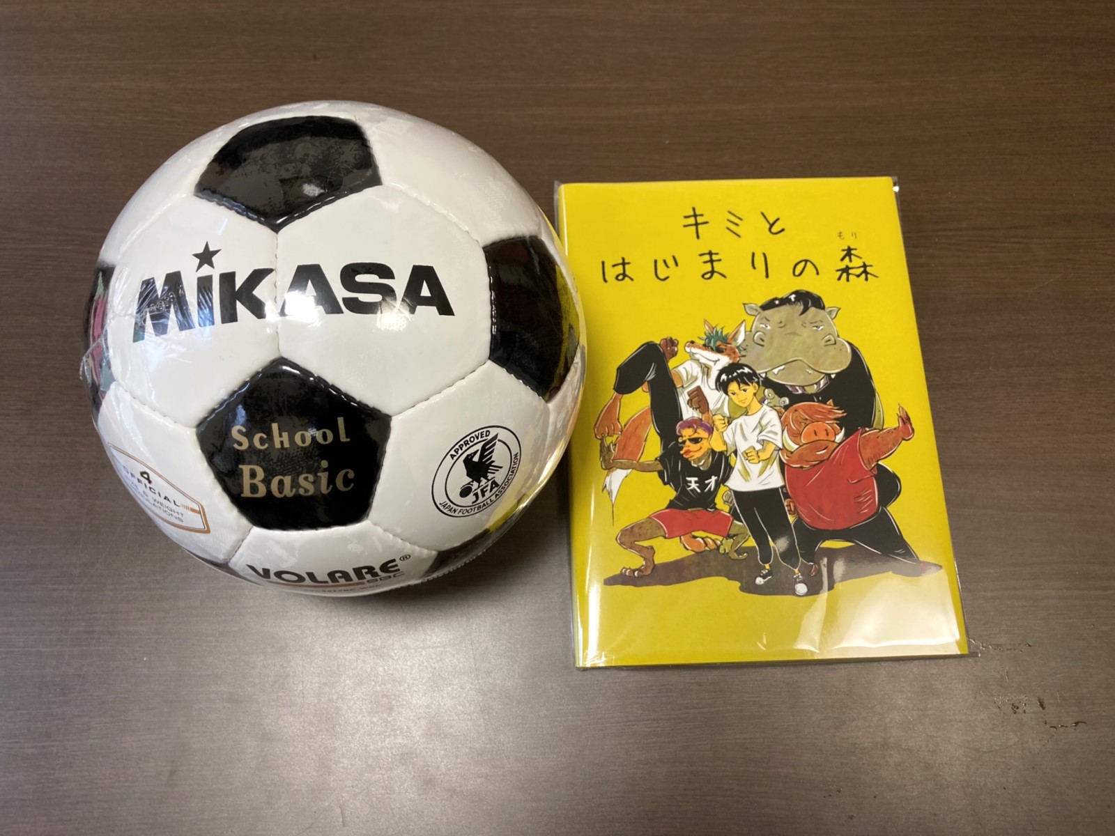 匿名の方より、絵本とサッカーボールをいただきました 2022/11/26 贈り物に感謝 ー令和4年11月26日ー 匿名の方から絵本とサッカーボールをいただきました。絵本「キミとはじまりの森」は、少年の心の移り変わっていく様子に、勇気を与えてもらえるお話でした。サッカーボールは、ワールドカップの真っ最中でもあり、みんなで使わせていただきます。ありがとうございました。