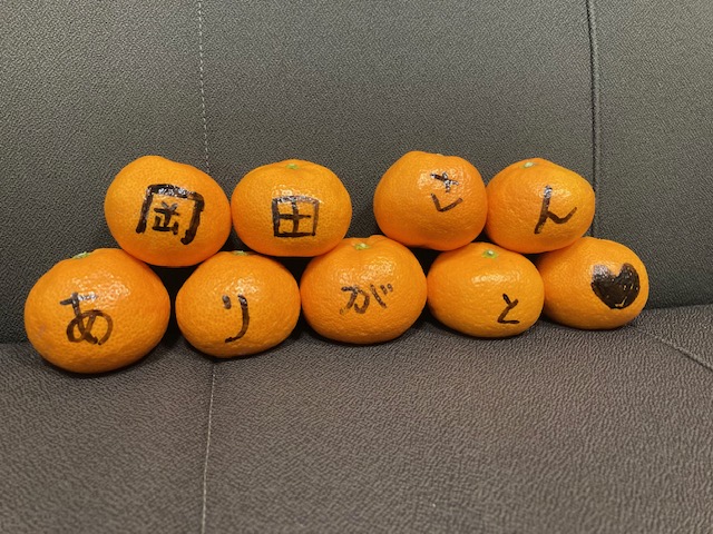 大政興業株式会社の岡田様より、みかんを贈っていただきました 2025/01/05 岡田さんありがとう! ー令和7年1月5日ー 大政興業株式会社の岡田様より、みかんを贈っていただきました。 このみかん、毎年のことながら甘くって美味しいんです。 こだわりのみかんです 甘くて美味しいんですよね 子ども達も大喜び。自分の分をすぐに食べきってしまう子どももいました 喜びの舞! 岡田さんへのメッセージ 岡田様、素敵な贈り物をありがとうございます!