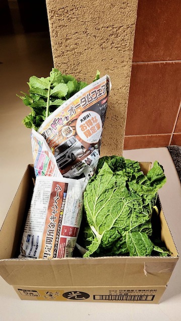 原様がご自身の畑で収穫したお野菜のようで、今回は白菜、大根、さつまいもを頂戴いたしました。
