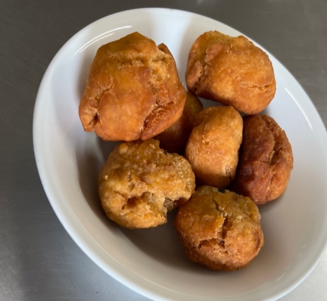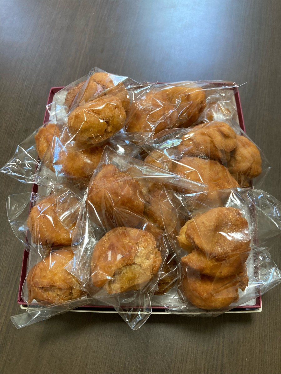 大月市の原まち子様より、サーターアンダギーをいただきました 2023/09/02 まーさん! ー令和5年9月2日ー 大月市にお住いの原様より、手作りのサーターアンダギーをいただきました。 沖縄の名物を美味しくいただきました。沖縄の方言では「美味しい」→「まーさん」「とてもおいしい」→「いっぺーまーさん」と言 うようです。原様、「いっぺーまーさん」でした! 長年に渡りご支援をいただきありがとうございます!