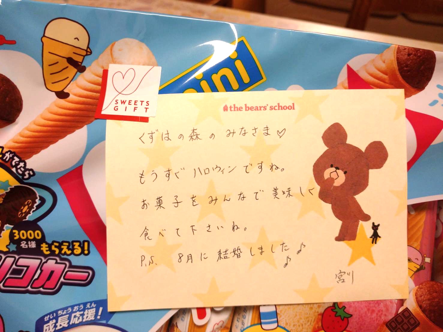 宮川浩子様より、お菓子をいただきました 2022/10/17 ハロウィンにむけて ー令和4年10月11日ー 宮川浩子様より、ハロウィンに向けてたくさんのお菓子をいただきました。毎年のご支援をありがとうございます。子ども達も宮川様からの贈り物を楽しみにしています。