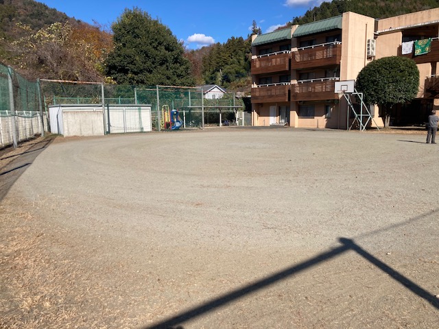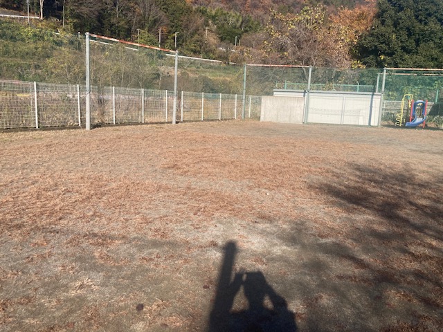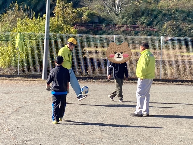 作業が終わるころに小学生が帰ってきました。早速、綺麗になったグランドでサッカーを一緒してもらいました。