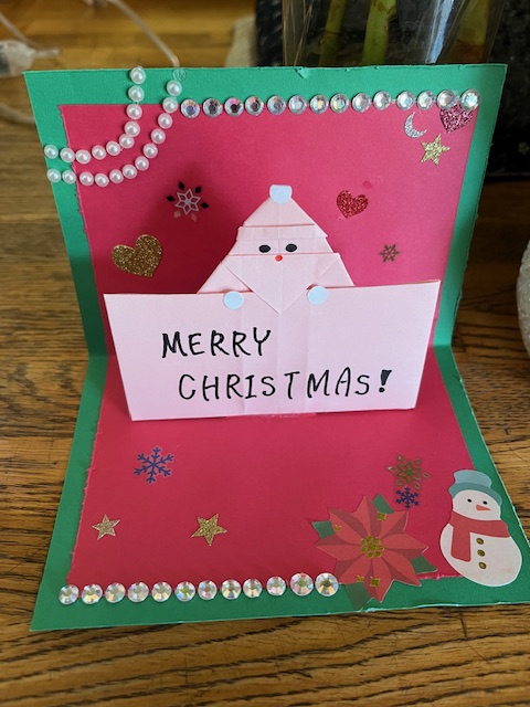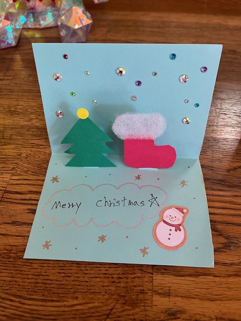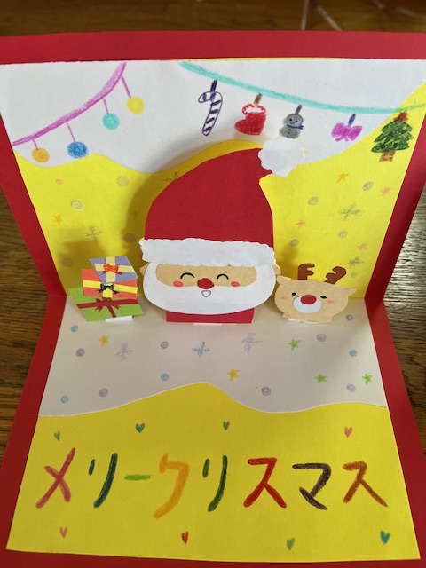 今日は山梨学院短期大学の学生の皆様より、手作りのクリスマスカードと学用品をいただきました。