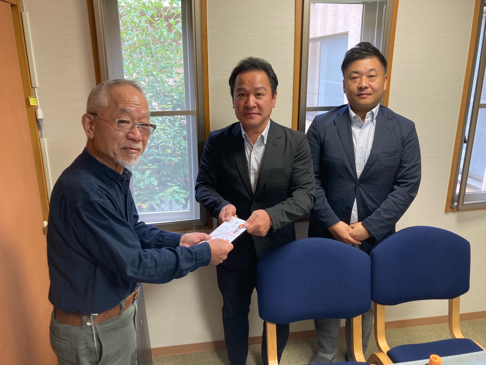 東京電力労働組合山梨地区本部様より、ご支援をいただきました 2024/10/18 ー令和6年10月18日ー 東京電力労働組合山梨地区本部様より、ご支援をいただきました。 当日は執行委員長の小川様と、書記長の木下様が来園してくださいました。 毎年12月に実施する行事「手打ちうどんともちつきの集い」に向けて活用させていただきます。 長年にわたるご支援に感謝申し上げます。 執行委員長の小川様(左)と書記長の木下様が来園されました