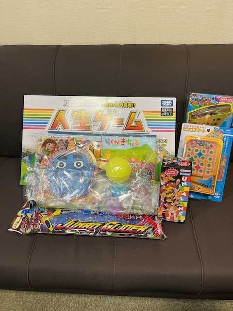 おもちゃの中には、昔懐かしいコマなどのおもちゃからみんなで楽しめるボードゲームまで!