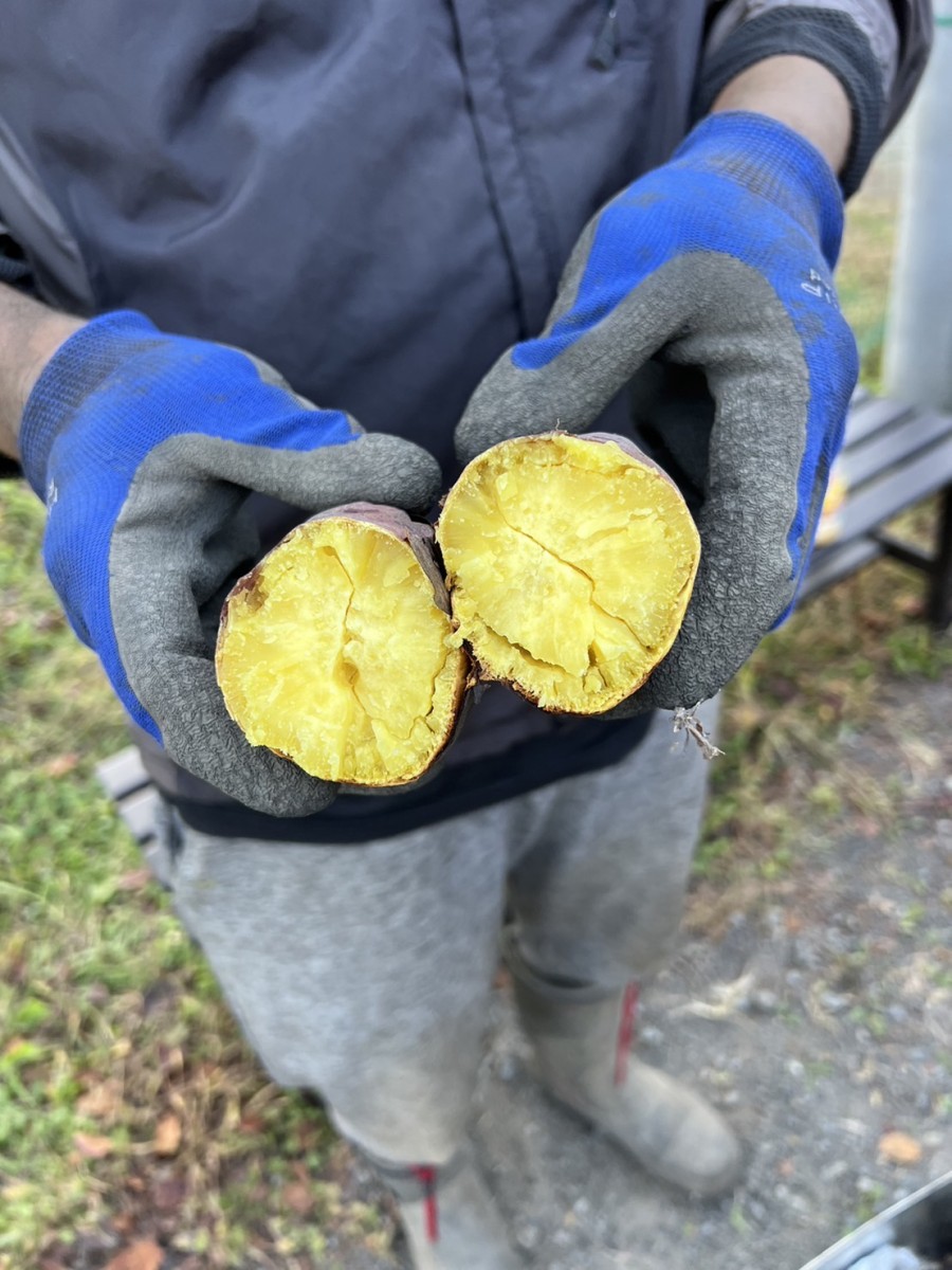 焼きいもをしました 2023/11/06 ホクホクです ー令和5年11月3日ー 今日は畑で採れたさつまいもを使って、焼いもをしました。上手に焼き上がり中はホクホク!甘くて美味しい! 天気も良く、良い時間となりました。