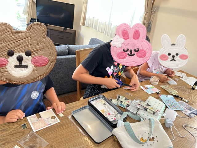 大月市も暑い日が続いています。 何か室内で子どもと一緒に楽しめることを…ということで、レジンを使って作品作りをしました‼︎ 思い思いに作れることもあって、子どもたちは「この色混ぜてみようかな」「このシールをレジンに入れてみよう」と、試行錯誤していました。 そして、作品が出来上がる度に「見てみて‼︎」と見せにきてくれます。 私自身、休日にレジンを練習していますが、子どもたちの作品を見ていると、本当に素敵な作品ばかりで、どこからそんなアイディアが出るんだろうとか、ここでこの部品を使うんだ等毎回驚きます。 また一緒に作ろうね‼︎