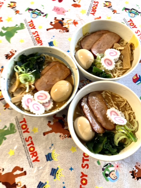 美味しくいただきました! 2025/02/20 利平次さんありがとう 今日のお昼は、先日利平治様からいただいたラーメンです。 いただいた煮卵、チャーシュー、メンマ、ナルトの他、ネギとワカメをトッピングして・・美味しそうに出来上がりました! 味噌、醤油子どもによって好みは色々でしたが、ケンカになる事もなくみんなで美味しくいただきました! 幸せでお腹いっぱい!利平治様ありがとうございました。 美味しく出来ました!