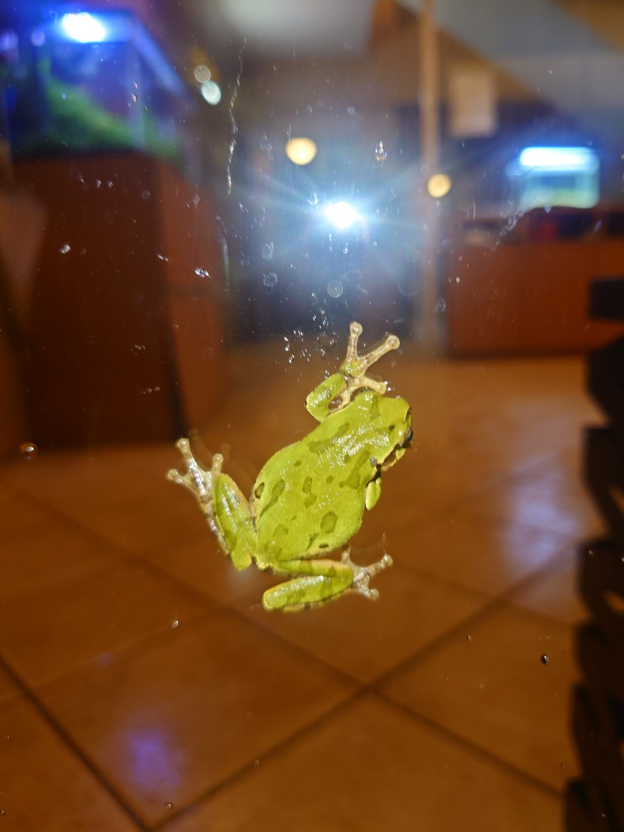 よく見ると可愛いのですが、少し苦手なカエルも施設に侵入しようとガラスにくっついていたり・・・。