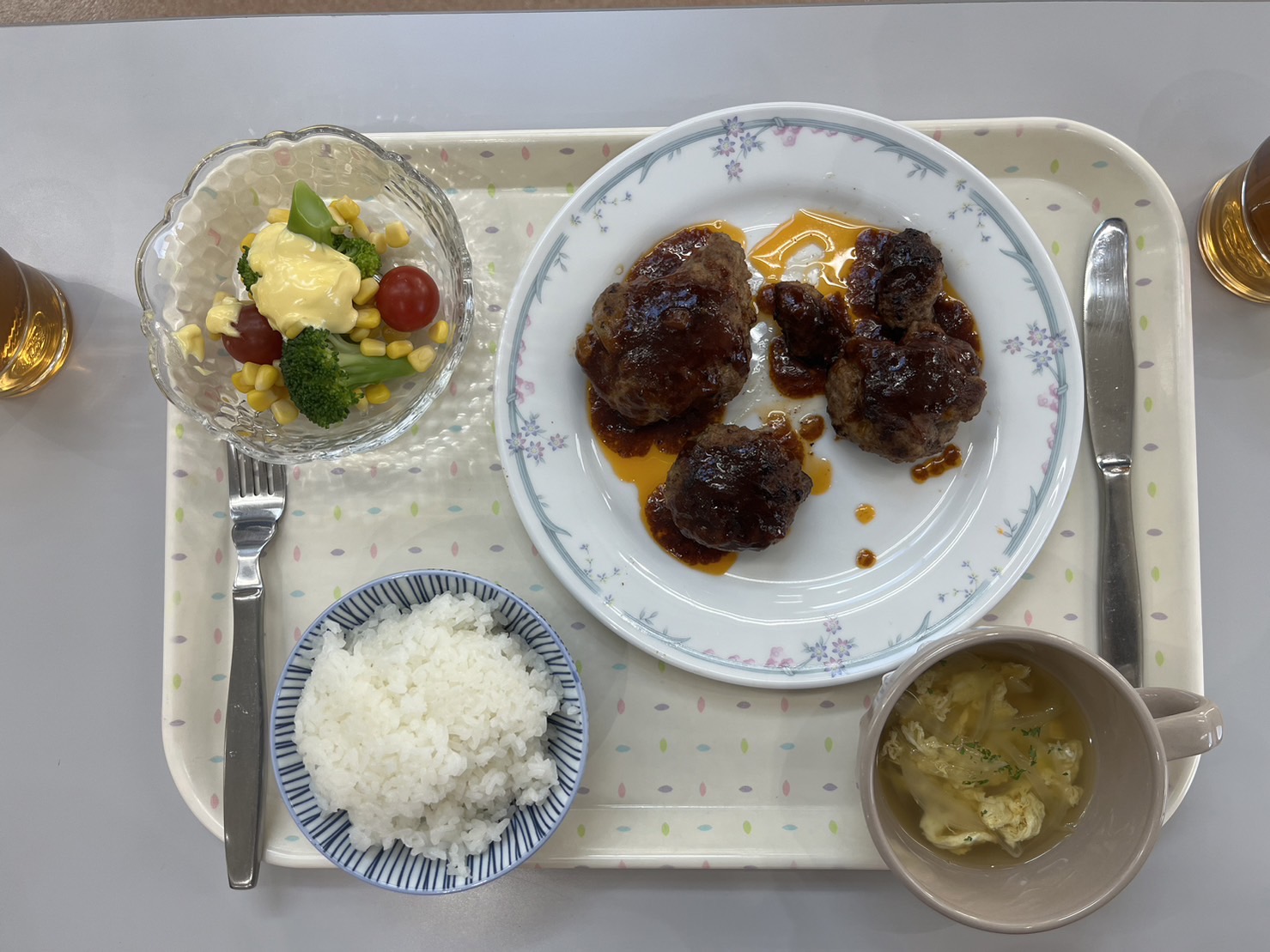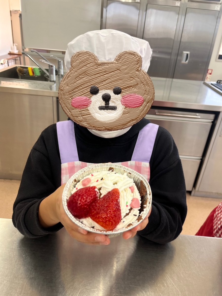 食事作りを楽しむことができることは、食育の第一歩ですよね!献立はハンバーグ、卵スープ、サラダ、チョコカップケーキです。