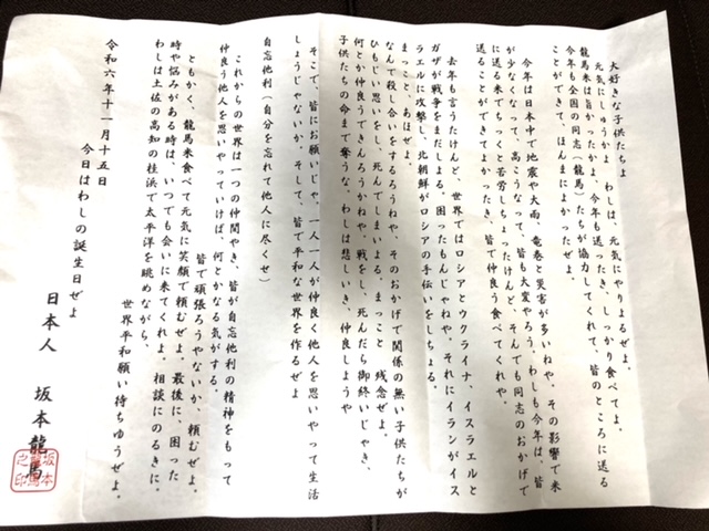 坂本龍馬様、今年もお誕生日に素敵な贈り物をありがとうございました!